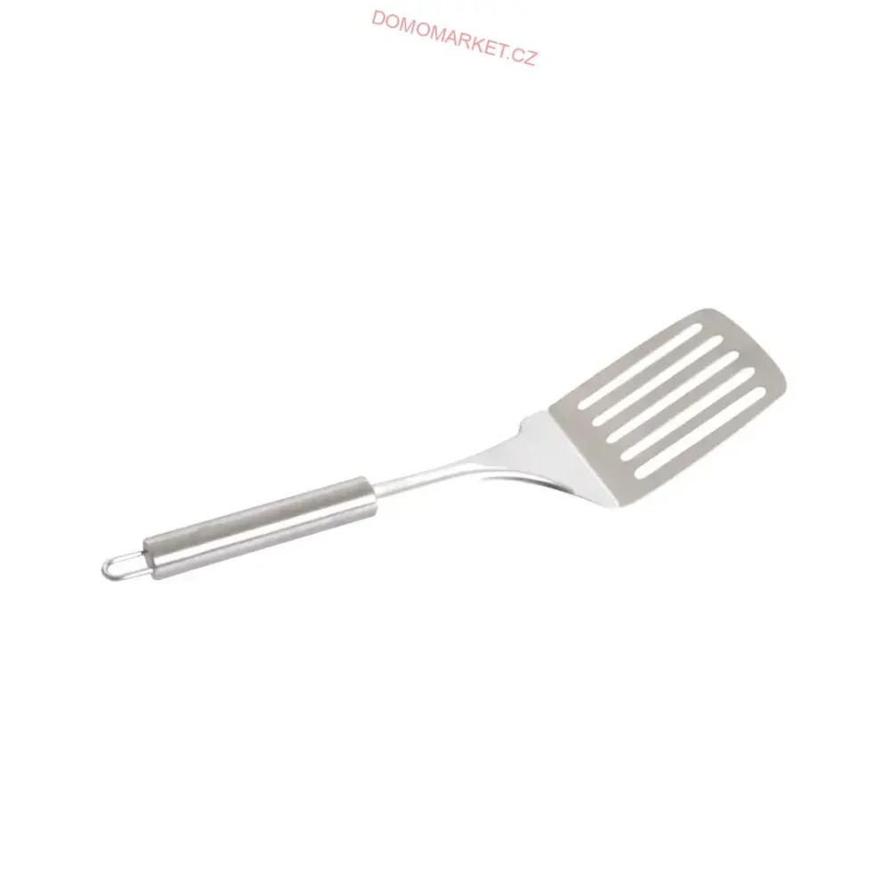 Obracečka vyrobena z nerezové oceli. Pevná konstrukce a dobrý materiál zaručují dlouhodobé používání. Velmi snadno se udržuje v čistotě a je vhodná i do myčky nádobí. Praktické očko pro zavěšení. Délka 33,5 cm.